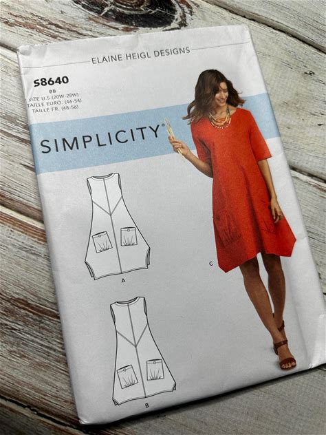 Women's Plus Pullover Dress Tunic Top Shirt With Pockets Sizes 20W-28W Paper Sewing Pattern Simplicity. Misses New Uncut. Elaine Heigl 8640