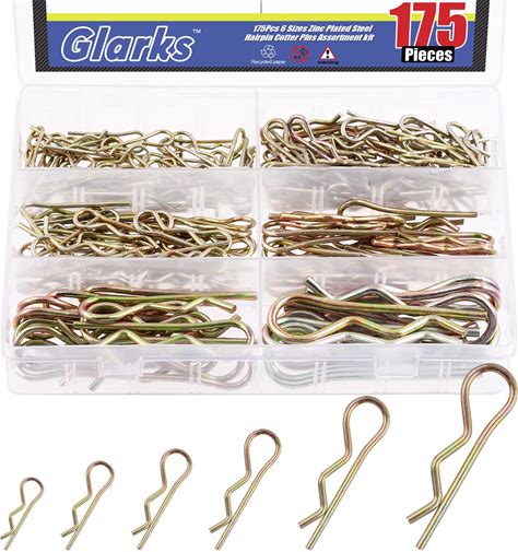 Glarks 175Pcs Hairpins R Clips Cotter Pins Assortment Kit 6 Sizes Zinc Plated Carbon Steel R Pin Hair Pin Clips Spring Fasteners For Hitch Pin Lock